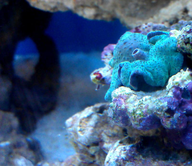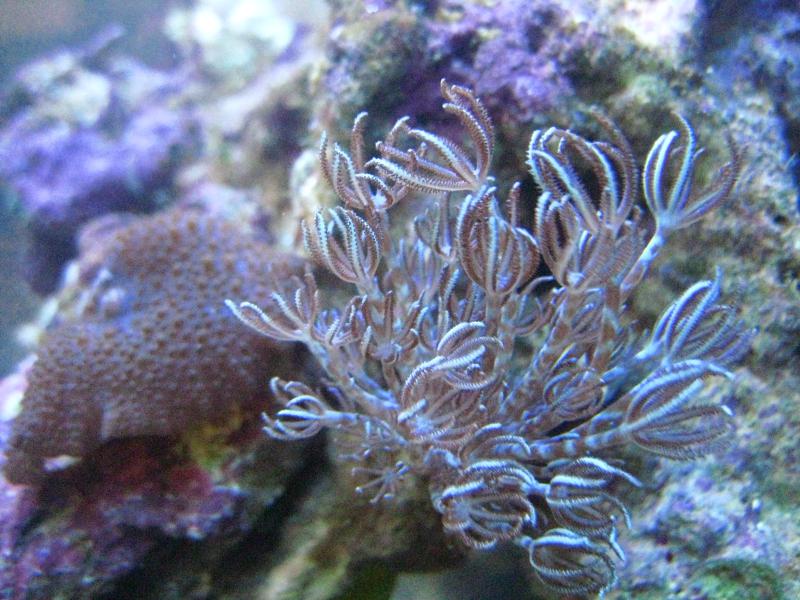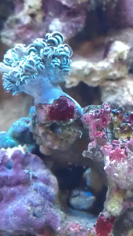 Итак ,продолжим.Море потихоньку начало играть яркими красками ,всё подросло,окрепло.Подросшие оцелярисы уселись на дискоактинию,за неимением подходящей, лисмата доктор привила потомство  сейчас видел около десятка криветулек по 7-8 мм(Может их гораздо вольше,пока за обогревателем и в норах жк. прячутся, но очень быстро плавают).уже начинают окрашиваться. Выплыл червяк чёрного цвета ,на голове четыре белых шипа-клыка, как у хищника из кино,определить (опознать) не смог,позже выложу фото. Разбираться не стал,изловил и в топку...уж очень страшный вид у него!