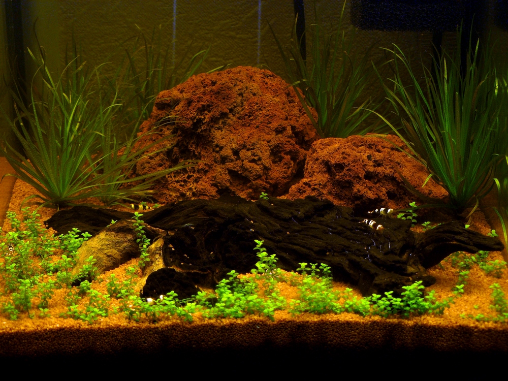 Хотя каюсь, сам не очень много аквариуму времени уделял, но когда у меня всплыла почвопокровка, в результате всплытия (мать ее так) коряги, то я не стал ее добавлять в оформление, потому, что это было не корректно, ибо я ее уже не растил с начала конкурса. Хотя ой как хотелось.