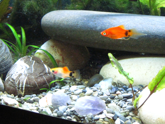 И прикупила 4х водорослеедов и не смогла пройти мимо пецилий "медвежие ушки" - правда только дома дошло, почему они так называются