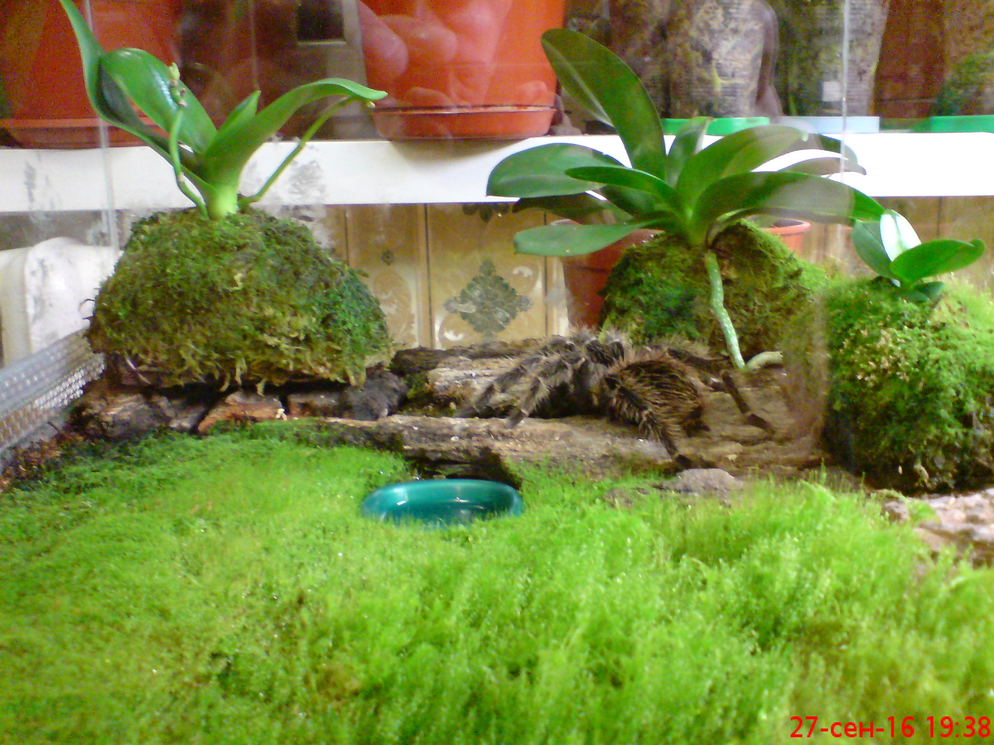 Террариум для паука Lasiodora parahybana с живым мхом и орхидеями