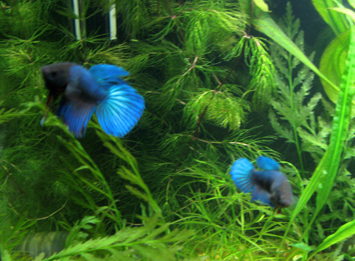 Поход на Птичку закончился вынужденным запуском четвертого аквариума - не приходя в сознание было куплено несколько рыбешек  . Но макроподики просто класс - молоденькие, хорошенькие такие пышечки. Мужская часть населения быстро и довольно мирно поделила аквариум и уже занялась пузырянием, так что есть надежда на совместное проживание маленьких драчунов.