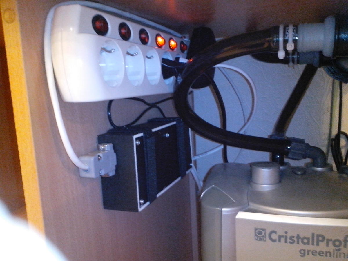 Силовой блок, управляемый таймером, установлен в отдельном корпусе с исполнительными реле. Нагрузочная способность каждого канала может варьироваться в зависимости от типа используемого реле (типовая нагрузка 10А при 250 VAC, 7A при 30 VDC). Силовая часть заканчивается клеммниками с винтовыми зажимами (см. фото).