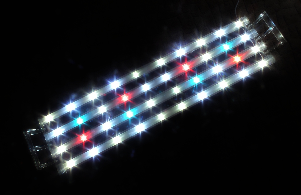 В светильнике применяются диоды 3W CW 6500k -6750,Red-625nm,Cyan-490nm Blue 450-470nm - на базе производителей чипов CREE-PROLIGHT-TOSHIBA- Seoul Semiconductors.(диоды на протяжении 8 лет зарекомендовали себя только с лучшей стороны)