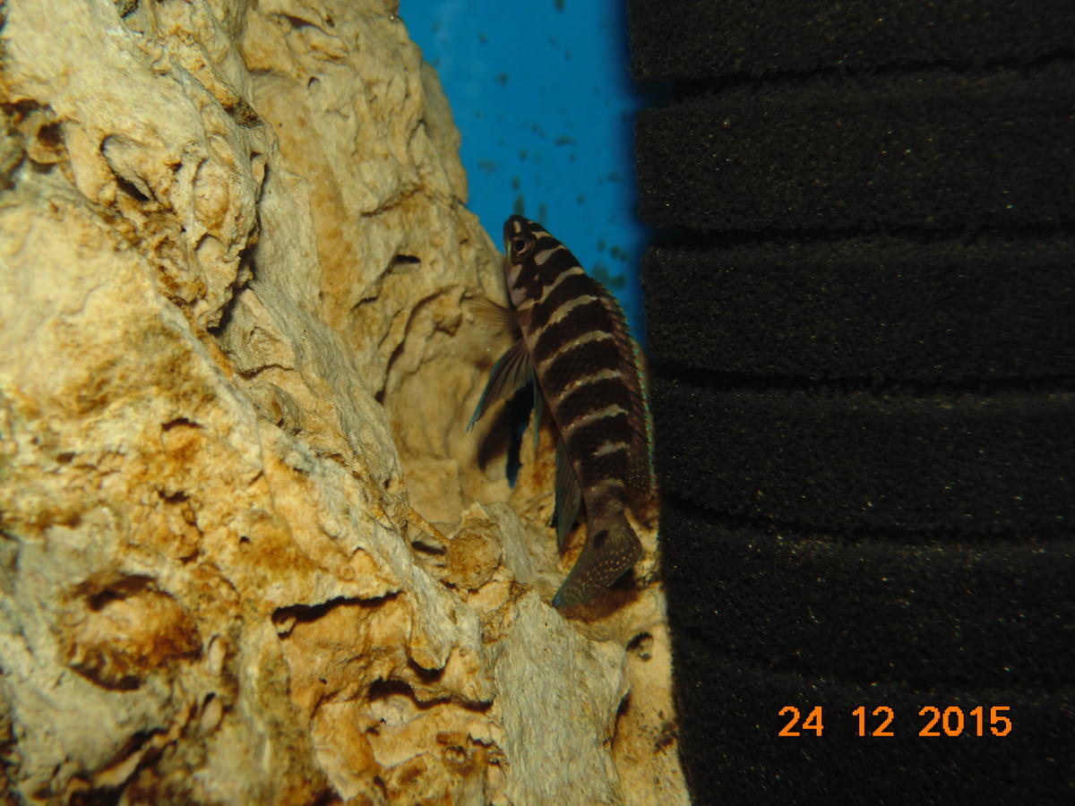 (Julidochromis marlieri"Kalambo")юлидохромис марлиера (самая красивая и крупная самка первая пара)на пороге владений...