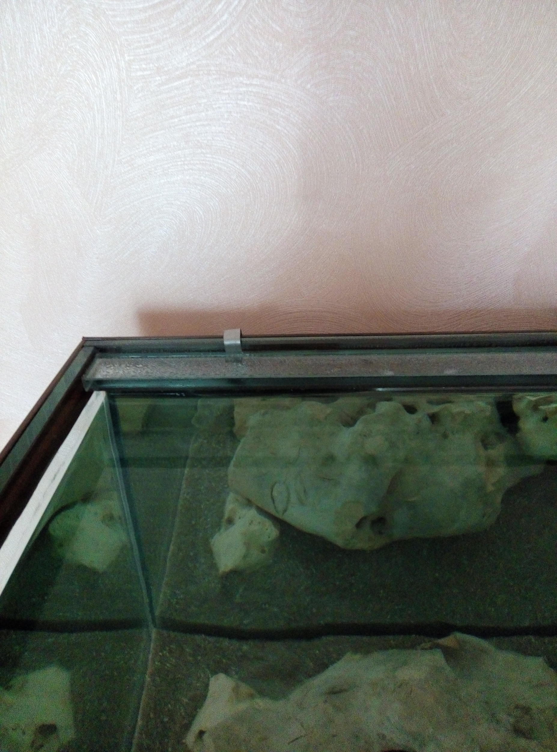 аквариум делали в моем городе. стекло 10мм. Стоило мне это 1900 грн. Потом дозаказал покровное стекло 4мм.- 130грн. Вот немного фото верха. Себе тоже буду ставить лэд светильник, но пока финансы не позволяют. Щели между частями стекла из-за того что не заказал покровное стекло сразу вместе с аквариумом и пришлось указывать размеры немного меньше чем нужно. Нужно будет надеть прозразный кембрик на стёкла, чтобы они между собой не соприкасались.