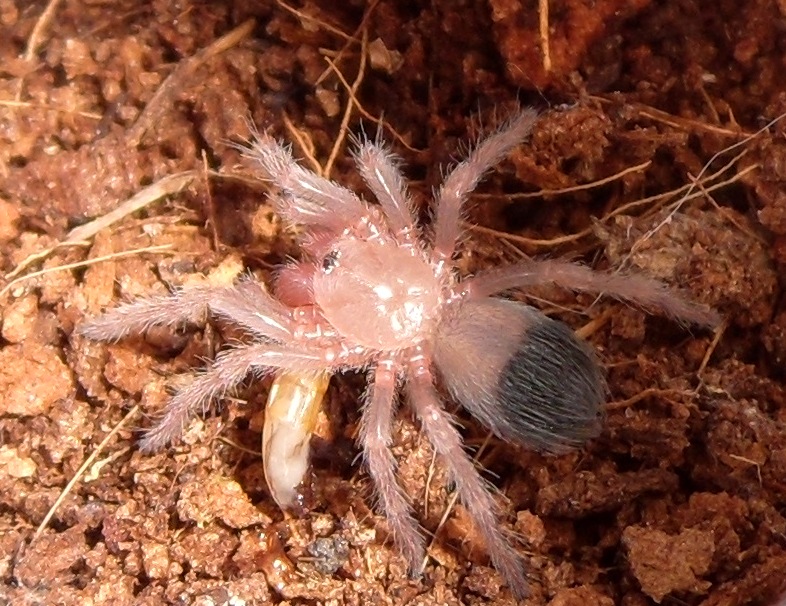 есть два паучка с одного кокана, один у меня, другой у друга.. мой по меньше по размерам, но оба отказались от пищии в катакомбы позарывались.. как я понимаю тот что побольше готовиться к линьке..