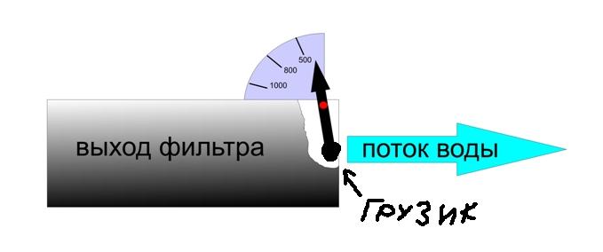 Сергей, можно сделать такую приблуду на выход фильтра(фото) лопасть которая отталкивается потоком воды на определенный угол в зависимости от напора, он же стрелка, и шкалу производительности.
