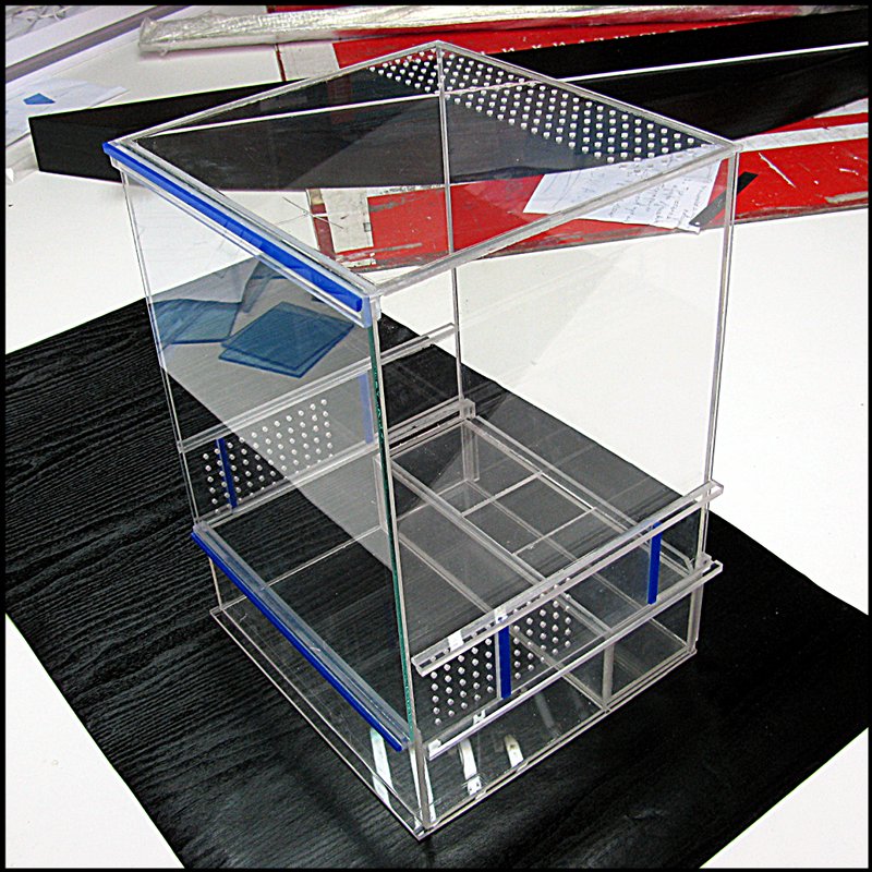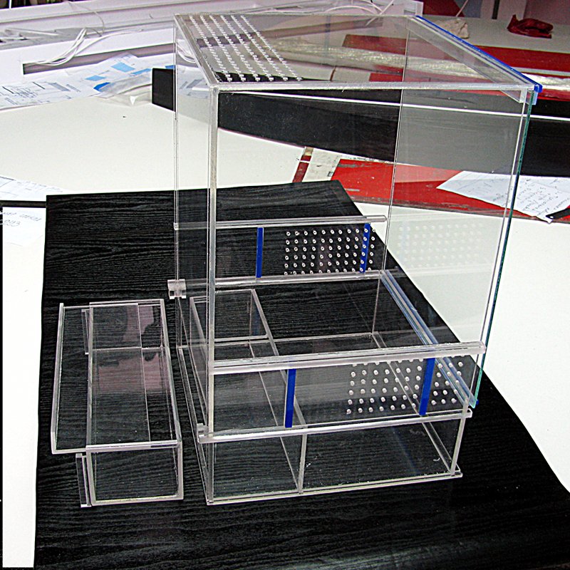 Не сочтите рекламой, для пецилотерии, делал вот такой террариум, с выдвижным пеналом, загоняем туда тварючку и вынимаем или чистим терр. Разрабатывалась конструкция под чутким руководством тов. Экспериментатора, за что ему большое спасибо