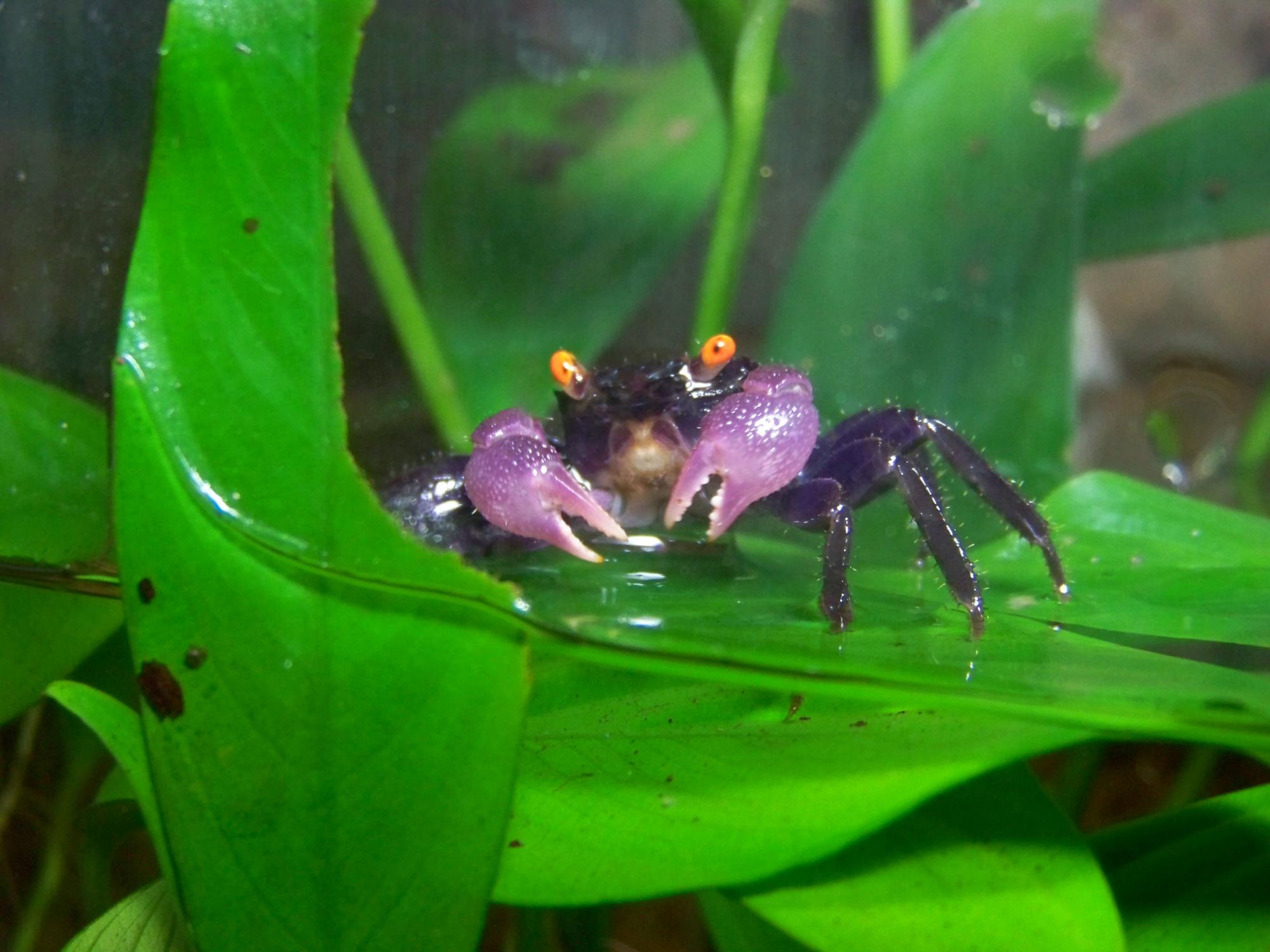 У меня они живут в палюдариуме, в пресной воде и около неё, едят практически всё, с прямым развитием, размер по без лапок 2-2,5 см. Абсолютно неприхотливы. Не зверь а мечта поэта.