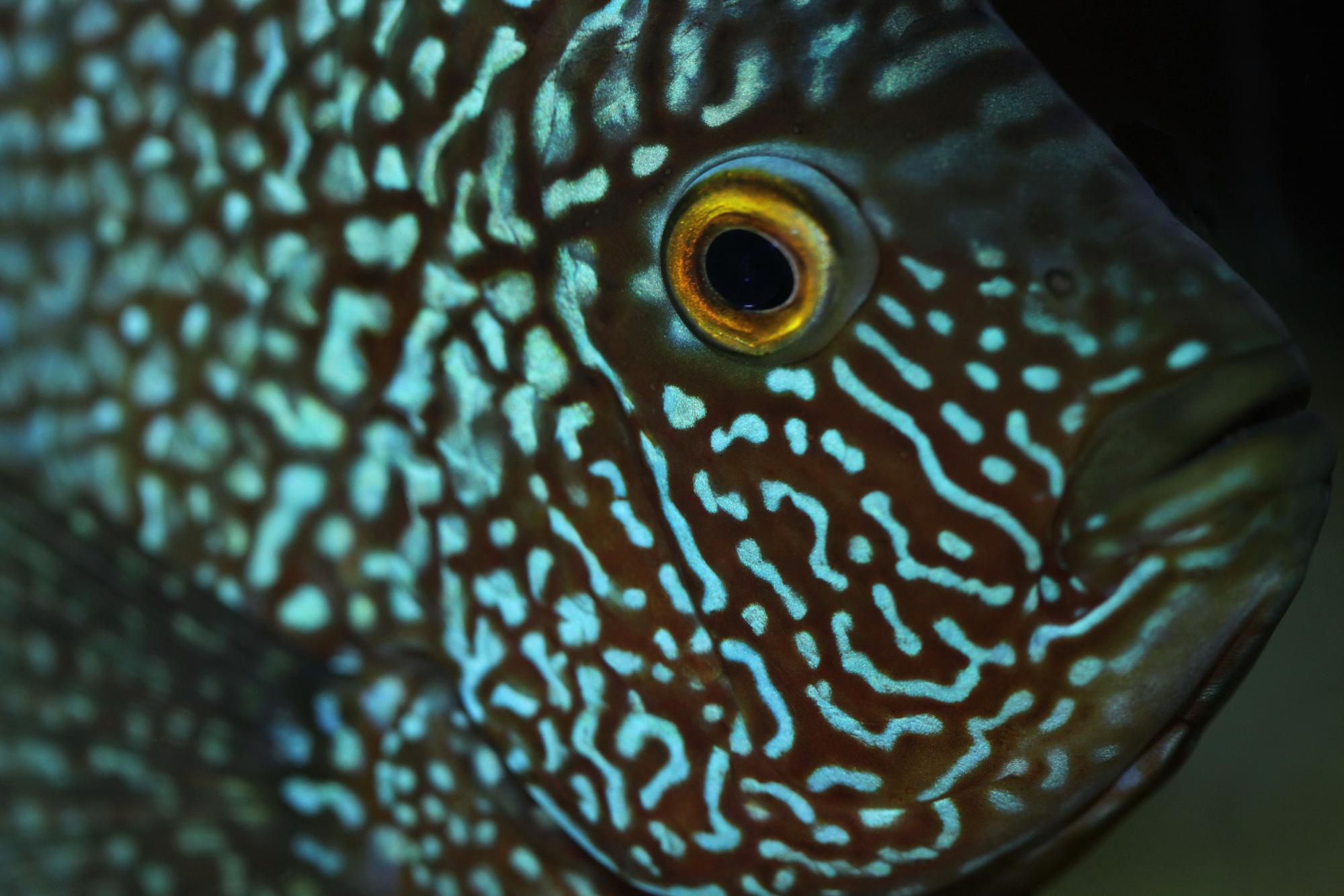 Интересно то что она почти чорная, но на жаберных крышках из под черноты пробивается явно оранжево-красный блеск, может как Хорн собирается линять.