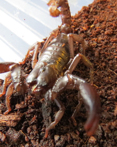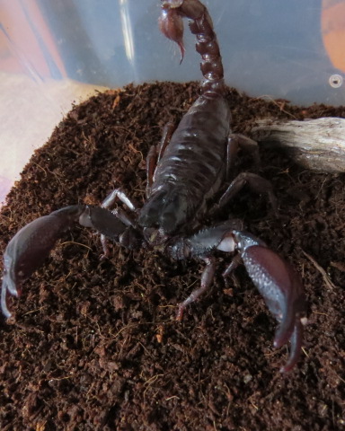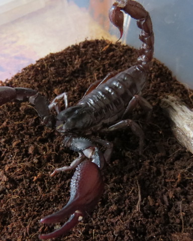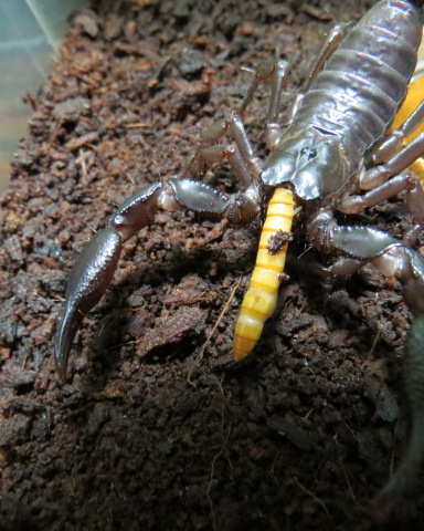 За неделю до родов сожрала имаго самца блаптички, я уже думал что скорпик лопнет от жадности, но обошлось.
