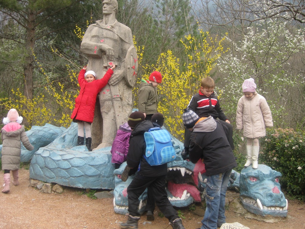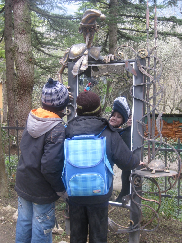 А ялтинские детишки сегодня были на Поляне сказок. Там они побывали в Королевстве кривых зеркал... Увидели Красную Шапочку и волка, Трех поросят, Русалку с младенцем, Белоснежку и семь гномов, Хозяйку медной горы, охраняющую свои сокровища...Увидели героев сказок Александра Сергеевича Пушкина. Познакомились с языческими богами. И даже видели живую Бабу Ягу!...