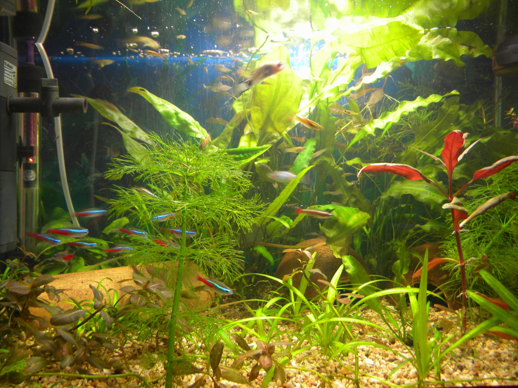 Про акву: 90 литров, свет около 0,7 Вт на литр 11-12 часов, СО2 бражка, удо микро по Ермолаеву.
