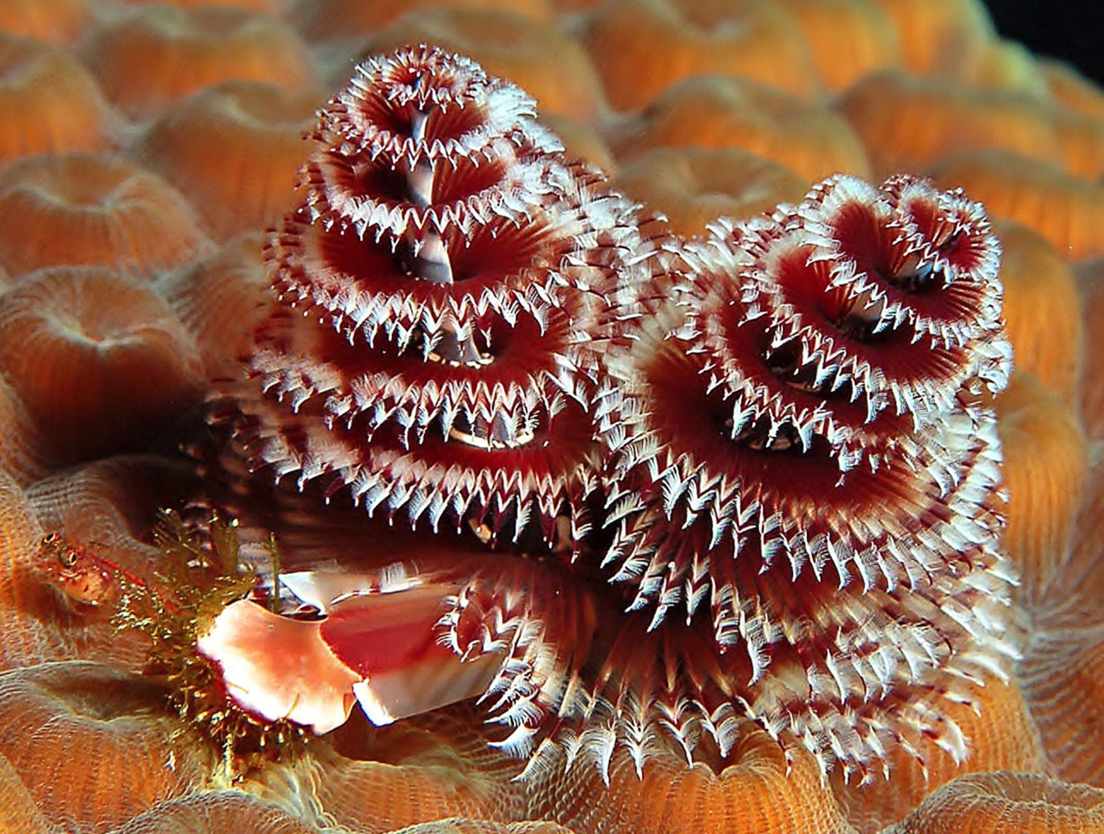На фото снежные мурены Echidna nebulosa и синеполосый групер Cephalopholis formosa