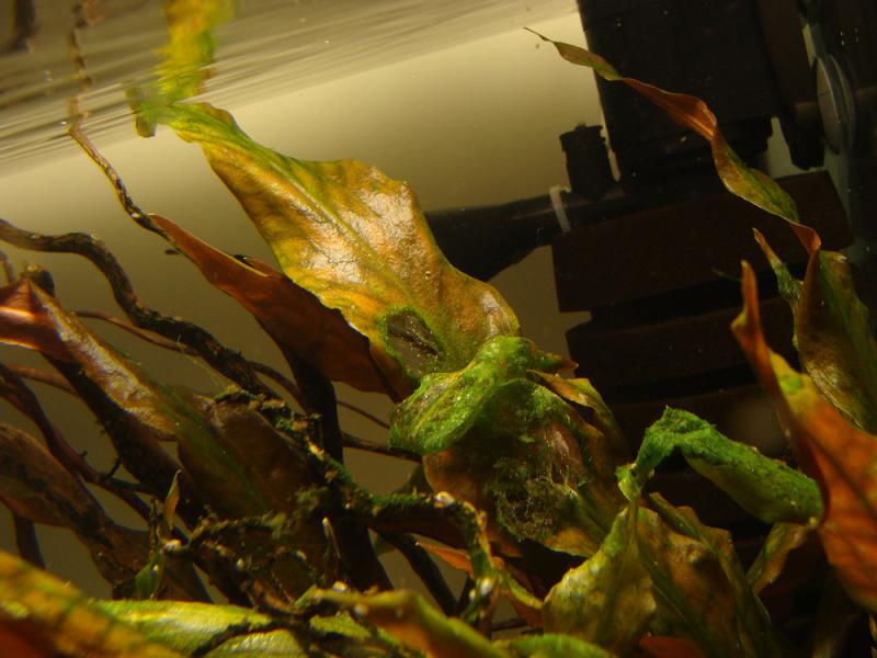вот только на анубиасе вар бартери и на апоногетонов есть борода (по тихоньку прогресирует) на листьях , перекорм рыб исключается(проверял) , грут сифонится , недостатка удо нет(нитрат/ фосфат поддерживаю 10/1(капаю вечером), а микро (флорастим)и железо утром каждый день ) в чем может быть причина бороды ?