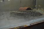 Lepidosiren paradoxa,несколько дней назад в очередной раз была получена не большая партия мальков этой экзотики . Размер вновь прибывших лепидосирен от 6 до 10 см ,обычно поставщики присылают в размере от 10 см , а в этот раз до 10см . Интересно то что яркий мальковый окрас максимально выражен у более крупных особей те которые 9-10см , а те которые меньше абсолютно не имеют желтого крапа , с чего можно сделать вывод что яркий пятнистый окрас является переходным с малькового к взрослому ( лично я был уверен что пятнистый окрас у этих рыб присутствует с самого мелкого размера и сходит с ростом ) получается что этот шикарный окрас можно наблюдать с 10см до 20см .Фото своих выложу позже