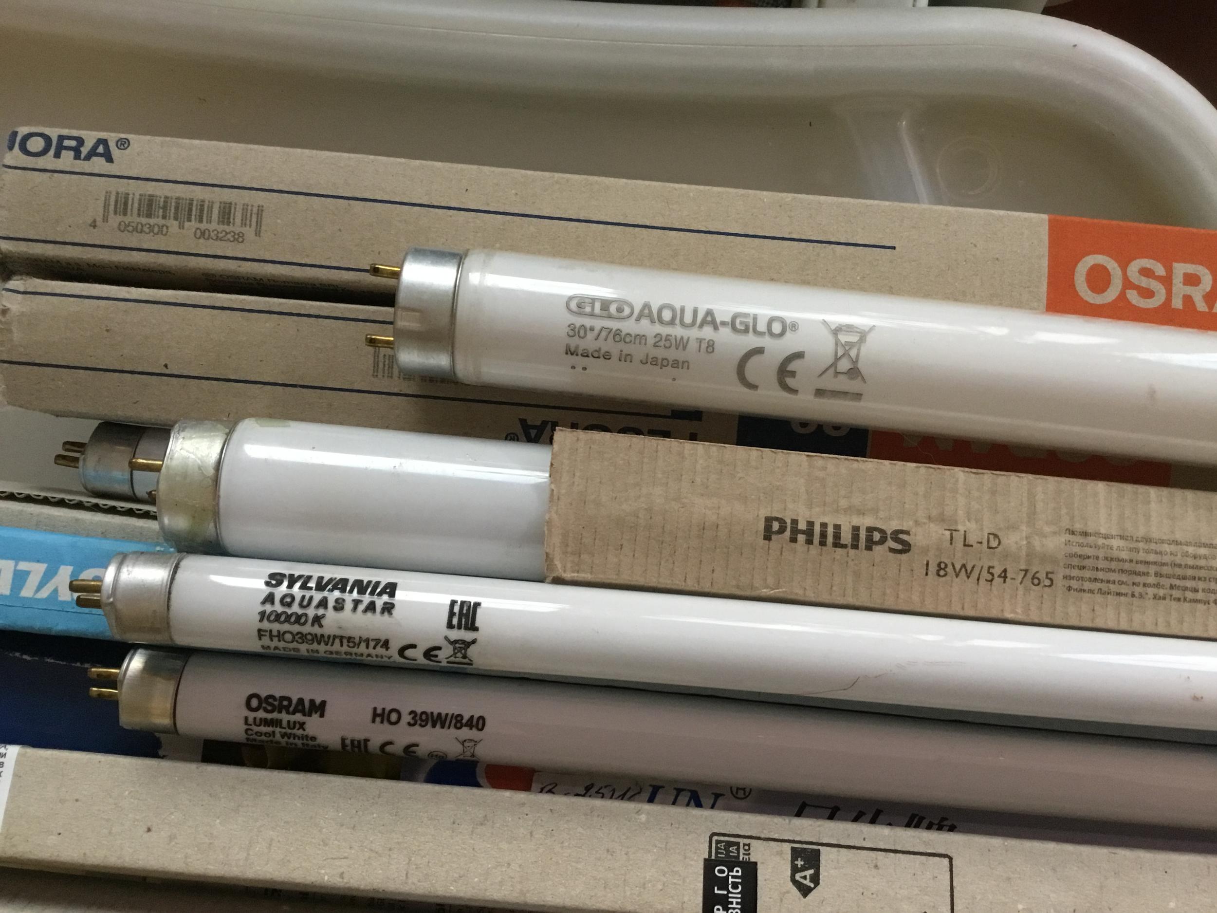В связи с переходом на светодиоды некуда деть кучу ламп Т5 и Т8 от 25 до 39 Ват на аквариум до метра, отдам в хорошие руки за символичные 100 гривень. Ламп больше 15.