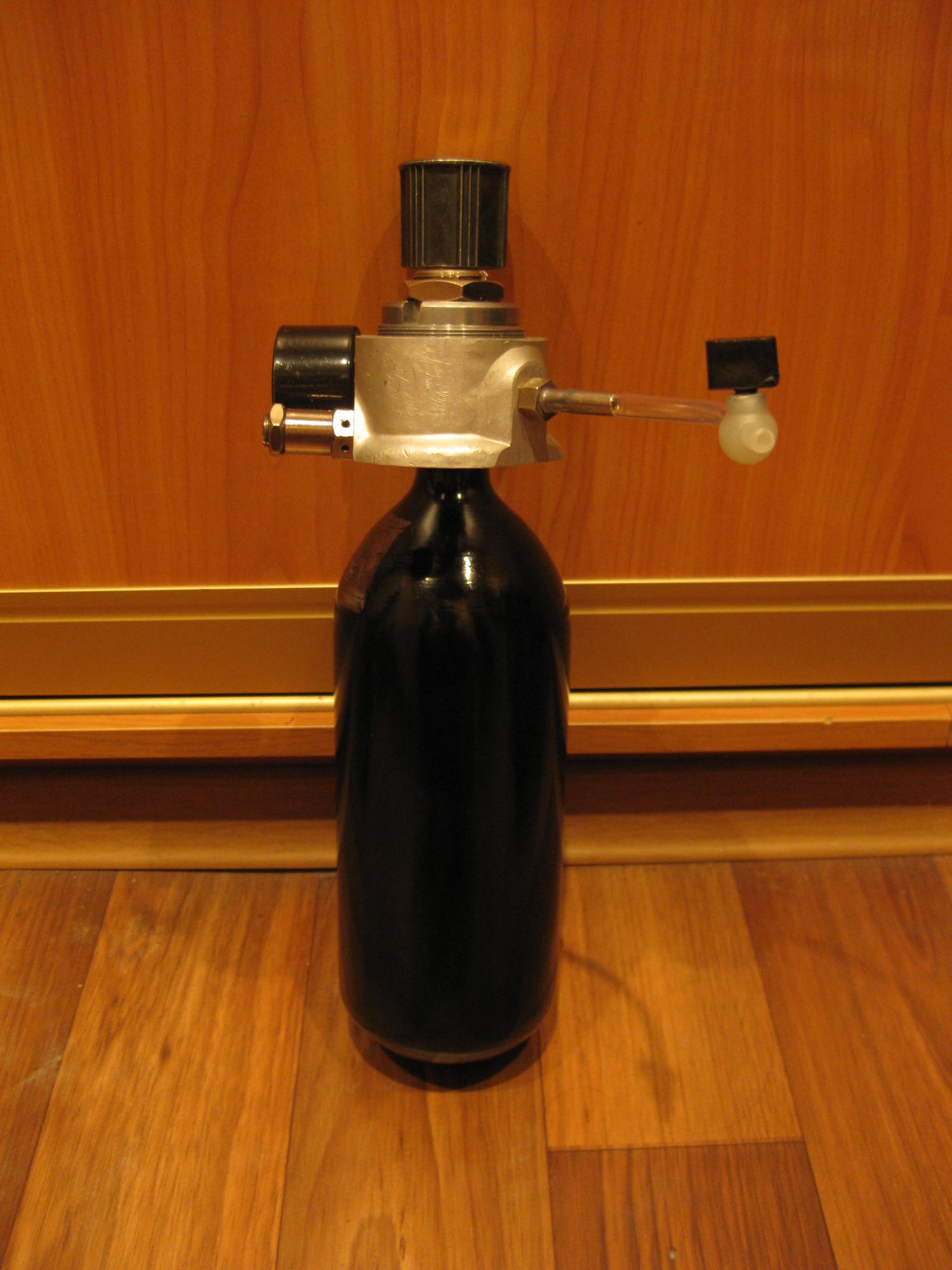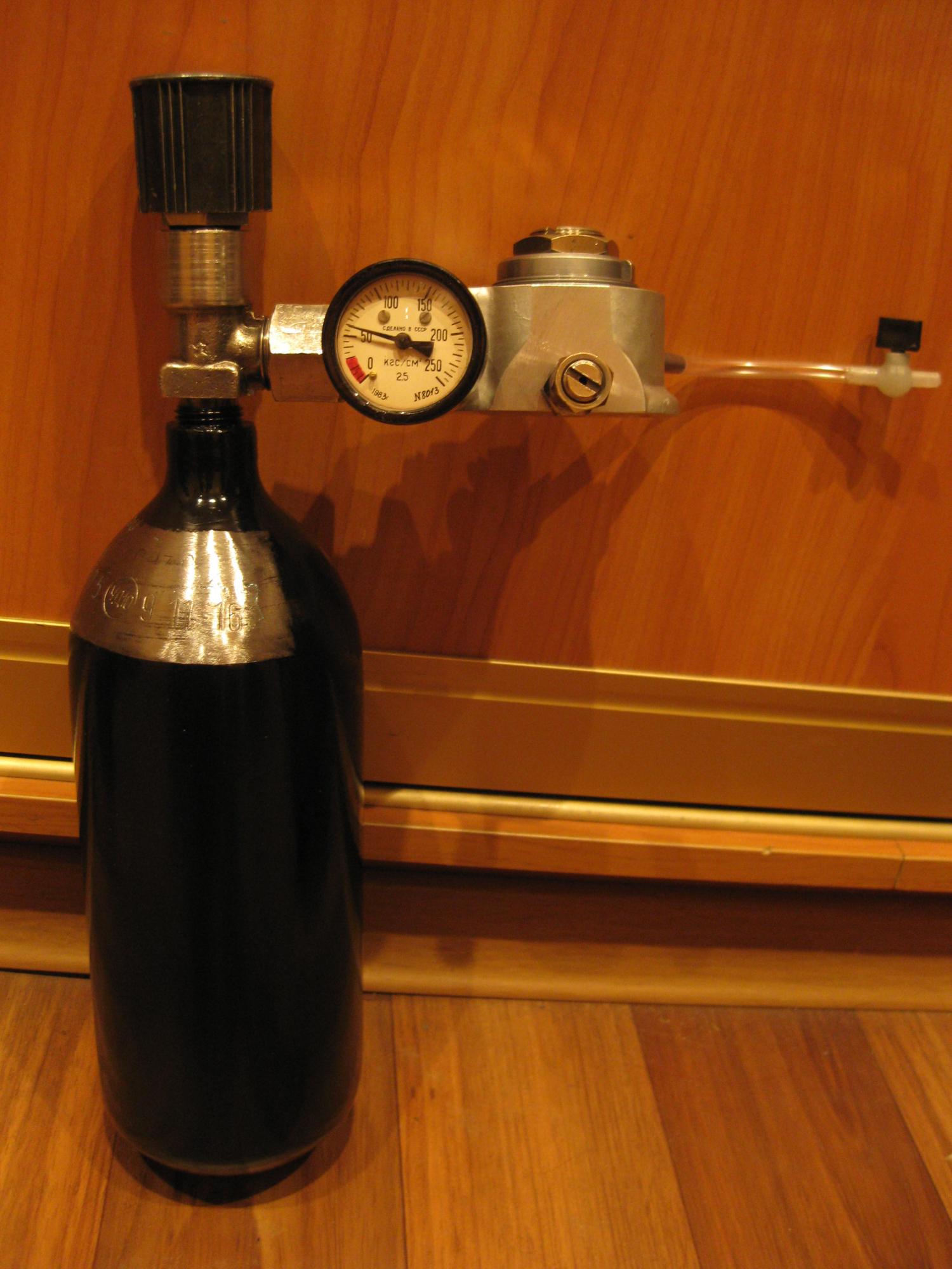 Баллон 1л:заправлен СО2,испытан до 2016г,высота 34см,ширина 9см - 150гр. Кислородный редуктор с краником (для точной настройки подачи СО2) - 130гр = 280гр.