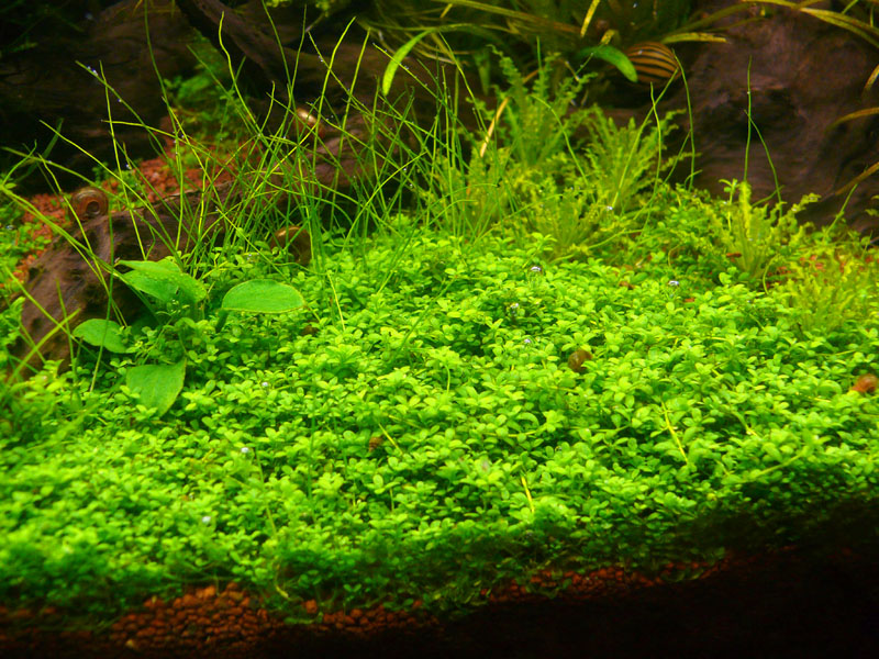Отличная почвопокровка для медленных, плохоосвещенных аквариумов, хотя отлично растет и при ярком освещении. Фото ниже.