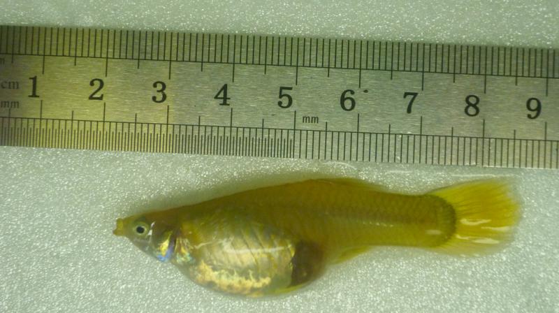 Желтая самочка. Такая дает примерно 50 мальков минимум. Чем меня и радует