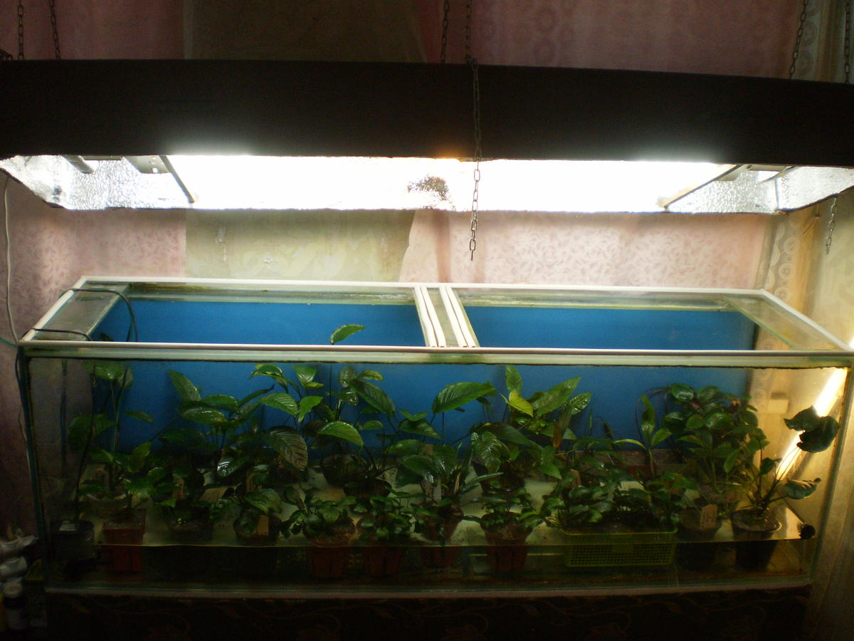 В связи с расформировкой 500л эхинодорусника,остался большой аквариум с 10-ки,180*45*50.Было решено сделать в нём вторую теплицу(проект будет иметь название №2).