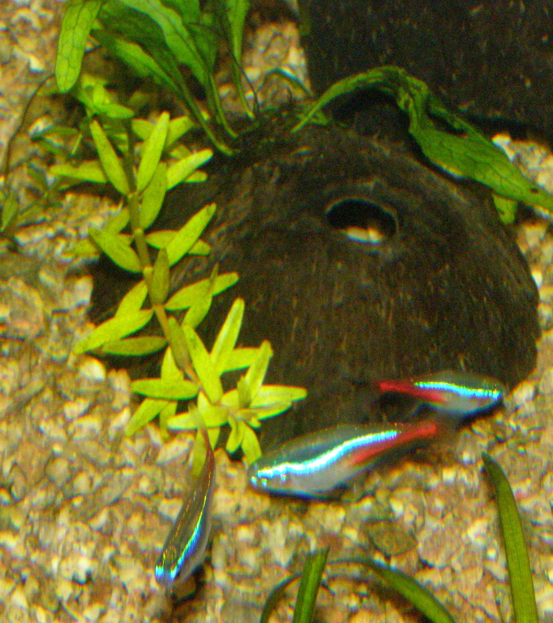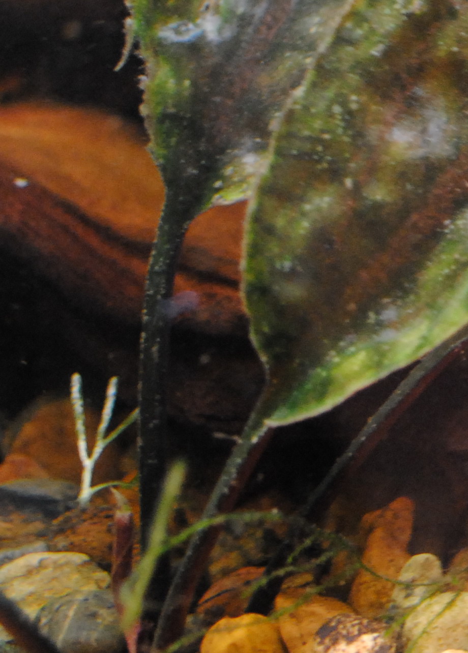 И еще Криптокорины тоже как-то не хорошо себя чувствуют - на черешках листьев какие-то точки, листья тоже как-будто побиты молью (фото тоже прилагается). Может это одна и таже болячка? Может какая-то водоросль или простейшие?