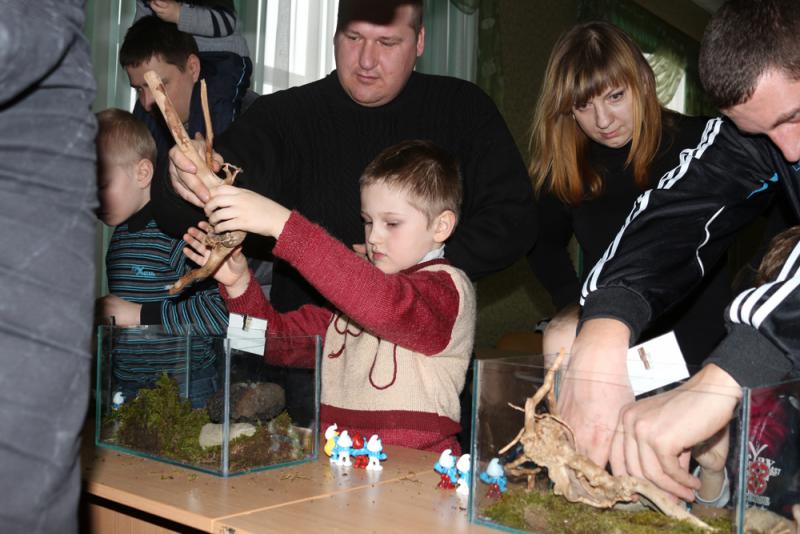 Конкурс проходил очень оживлённо!А победителей определили сразу по завершении оформительных работ,методом оценки и голосования жюри,и всех присутствующих болельщиков!Борьба развернулась не шуточная,но семья-победитель была определёна голосованием,и награждена комплектом ShrimpSet 20 L,вместе с грунтом,растениями и декорациями!