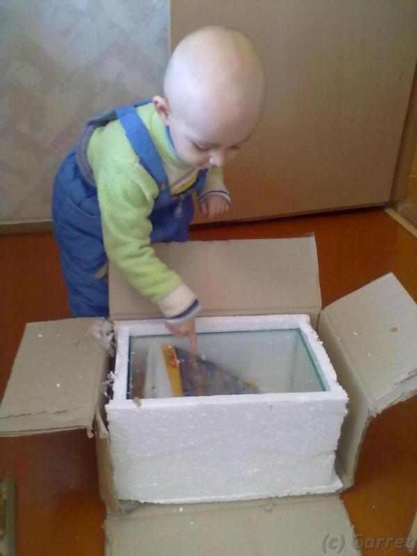 - Мне тоже было интересно, но нам надо было ехать и уняв своё любопытство и младшего члена команды решили распаковать всё у бабушки, а не в отделении почты. В пути сын придерживал коробку, чтобы она не сползла на крутых горках. По приезду мы распаковали коробку почти не раздеваясь. Фото к сожалению сделаны мобильником, но я думаю даже видео в высоком качестве не передало бы радости сына от «