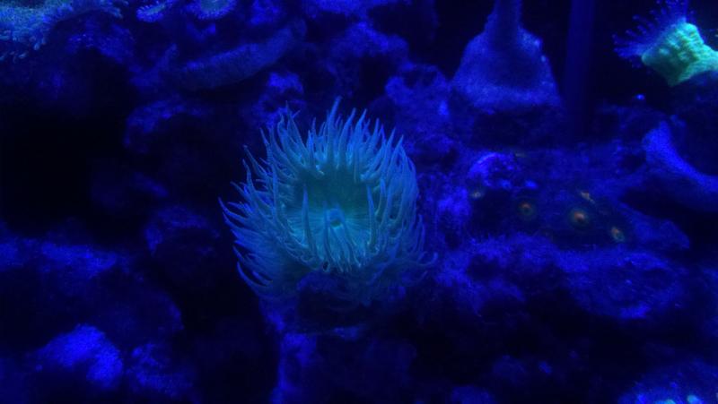 итак, из живности имею - рекардию флориду, зонтики 3 вида, родактис и монтипора конфуза и 3 полипа паразонтиков. Из наблюдений - у основания ножки монтипоры, там где она приклеена к камушку чуть поменялся цвет на более бледный.