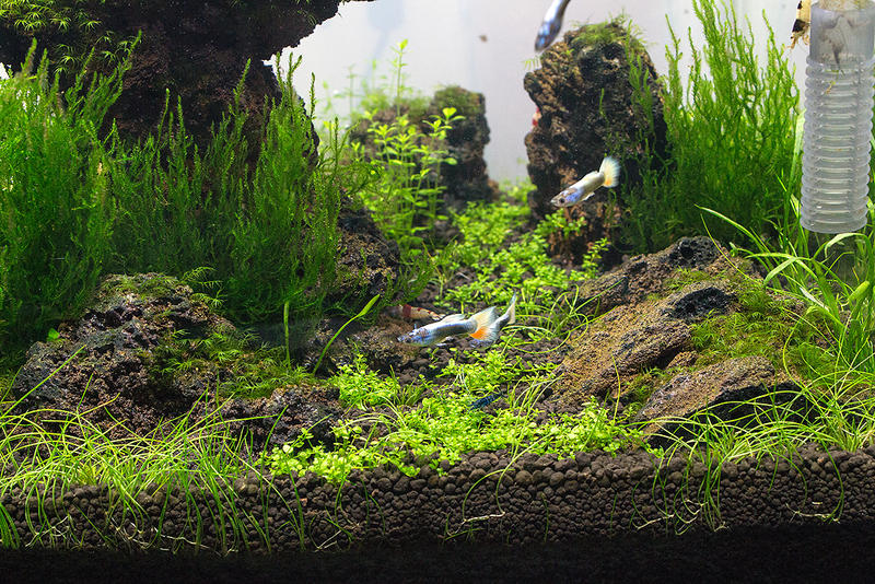 состояние аквариума как системы можно оценить по фото, никаких водорослей, все растет, вода кристально чистая. Именно таким он и должен быть.