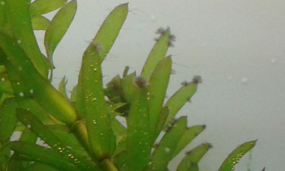 Появилась такая вот ерунда неделю назад. Именно в том виде как на фото. Расскажу предысторию - банка д 54 в 41 ш 10, 40 л, температура 26,5, запуск 5.04.15, свет 2хT5 по 8W 6100/4000 K, население 2 взрослых гуппи, 4 подростка, штук 10 мальков, 2 молли, 3 неона, анциструс, 6 черри. Растения 2 ануба, 2 крупных куста элодеи, амбулия, 3 куста валиснерии. Валиснерия высаживалась позже, недели 3 назад. Сразу после ее высадки появилась белая нитчатка - анцик справился. Неделю назад появилось ЭТО - две разные каки. Бороться начал 3 дня назад ежедневными подменами по 20% воды. Пока безрезультатно. Подскажите как победить