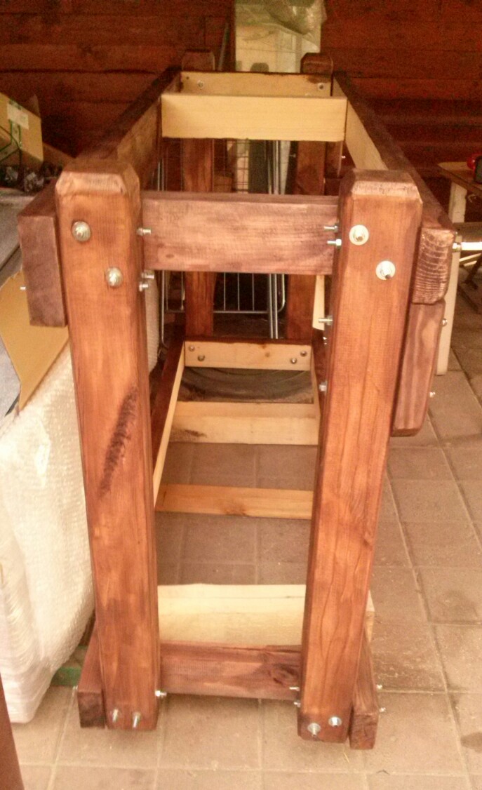 Стойка вышла крепкой и мощной. Собирал узлы на шпильках и винтах по дереву (8 мм).