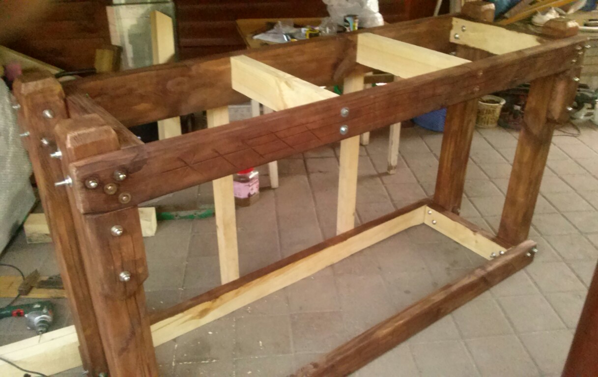 Осталось сделать боковые вертикальные перемычки ( брус) и передние. Думаю две ставить из трубы. Вскрыть пропиткой.