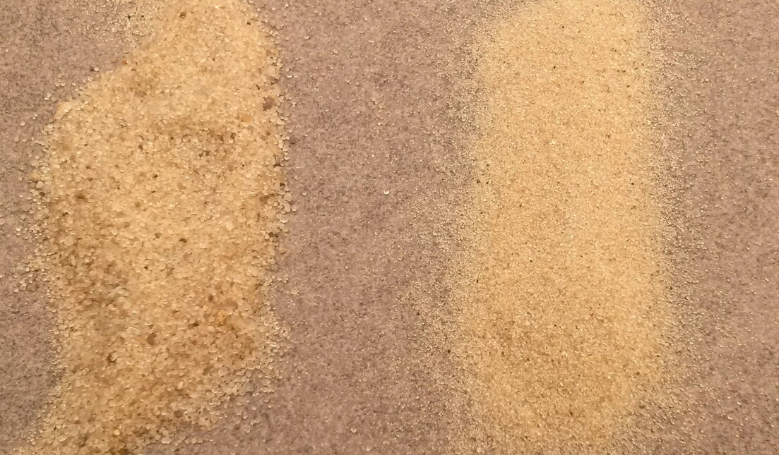 Привезла я песок с Днепра. Вот фото для сравнения: слева-Австрийский 0,4-0,8мм, справа- наш Днепровский (пыль). Сколько ж побережий исколесить нужно, в поисках нужной фракции и цвета?!
