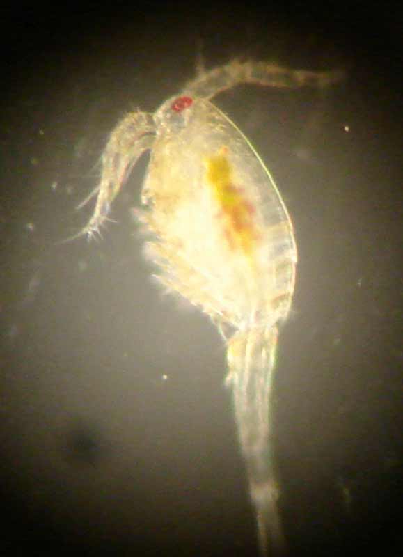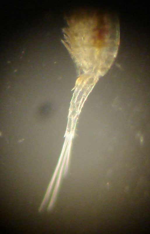А от маленького по 0,5 мм (правда не схожого на креветку) у мене валом. З якимось привозом заніс. Щось ракоподібне подовгасте сірого кольору. фотоапарат (мій) не бере. Рухається стрибками, але може і плавати, причому швидко. Популяція то росте, то падає.