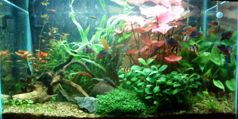 Сделал вчера прополку,правда состояние аквариума до нее не сфотографировал. Второе фото- это я достал корягу,которую уже не было видно за анубиасом и нимфеей и поигрался с камушками.