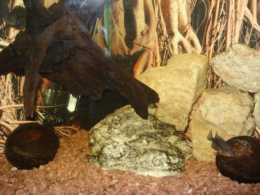 Я их "гнёзда расставил по углам баночки ибо друг друга изрядно трепали, представляю если бы были ещё "левые" рыбы.