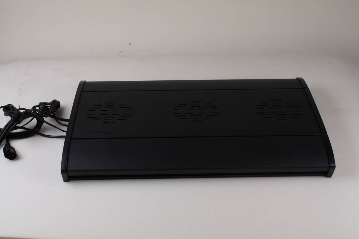 Интересен тем, что балласты МГ ламп выносные. В верхнюю крышку встроены 3 вентилятора.