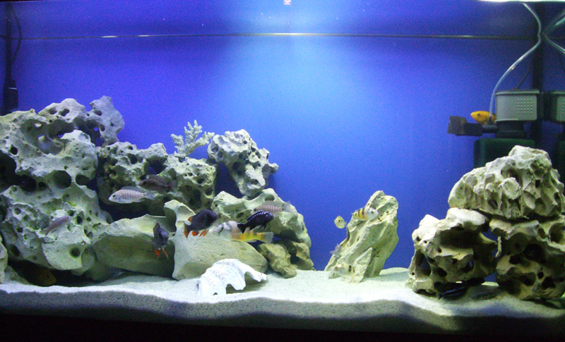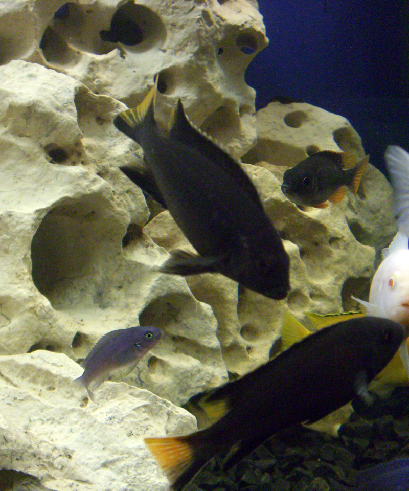 Появилось свободное время и решила по фотографировать аквариум. Тем более что к нам приехала долгожданная рыбка, которую выбирали не один день, свой выбор остановили на: Astatotilapia latifasciata(Окунёк), Копадихромис каданго,Maylandia callainos "Bright Blue"(Голубая зебра). В аквас добавили камней сделали больше укрытий, приняли не лекое решение убрать взрослую семью Cynotilapia sp. "hara" Gallireya Reef, но не все так печально, у нас подростает 5 мальков ляпиков! Новичков встретили лояльно , теперь потихоньку все обживаются и притираются