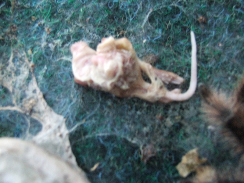 Сразу скажу, лучше не делайте этого. Во-первых мышь может поранить паука, во-вторых после кормления вонь стояла ужасная. Так что лучше не повторяйте моих ошибок.