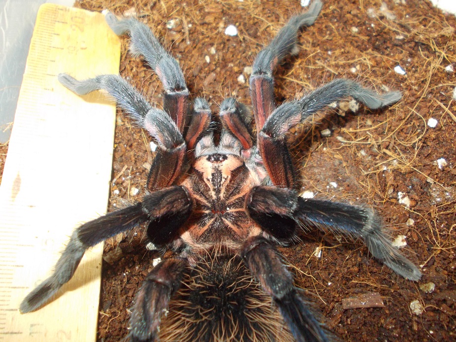Адультный самец. К сожалению так и не смог передать своей мыльницей глубокий бархатный черный цвет лап и слегка приглушенный розовый цвет. Фотки пересвечивают как черный, так и розовый оттенок.