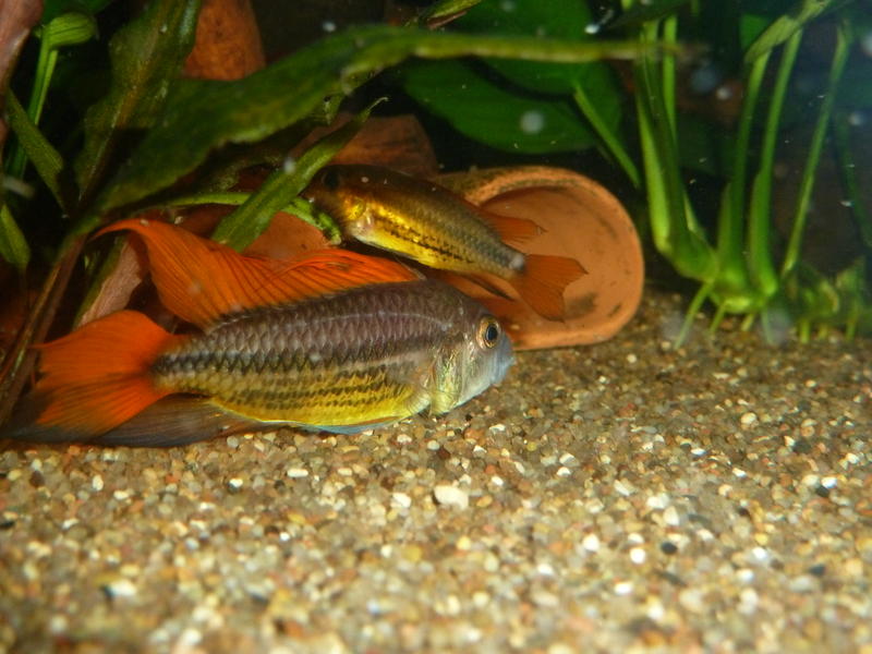 Пытались впервые отнереститься, мешает боция, уж очень любопытная!)