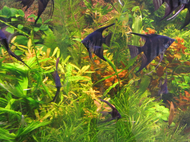 После двух нерестов скалярий http://www.aquaforum.ua/showthread.php?t=93373&page=5, следовало полностью восстановить аквариум. Поэтому, перевезла его на работу, чтобы радовал других. Аквариуму ровно неделя. Сегодня запустила несколько скалярий.