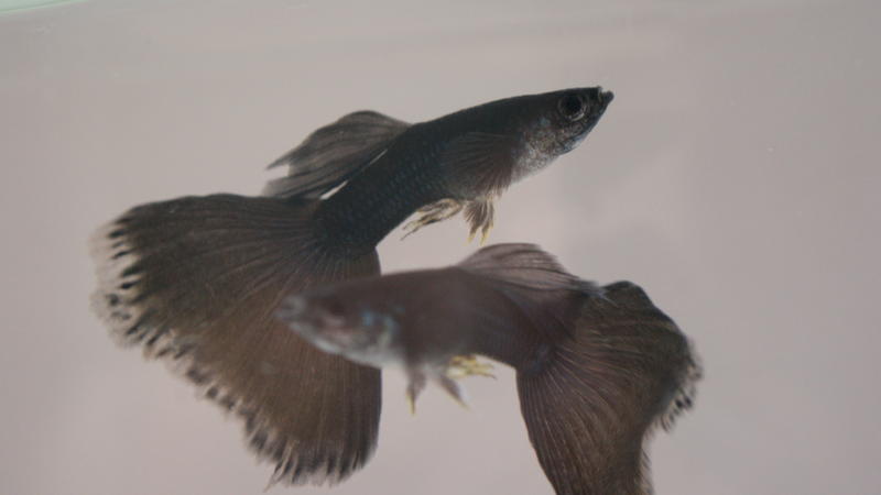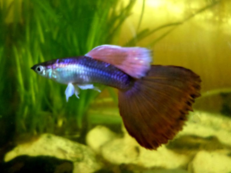 Как красиво смотрятся гупаки на солнечном свету! Это обычный нечистопородный берлинец, вернее микс, при искуственном освещении зеленого и фиолетового цвета нет совсем (все черное), а желтый тусклый.