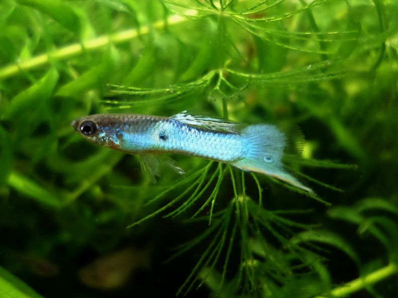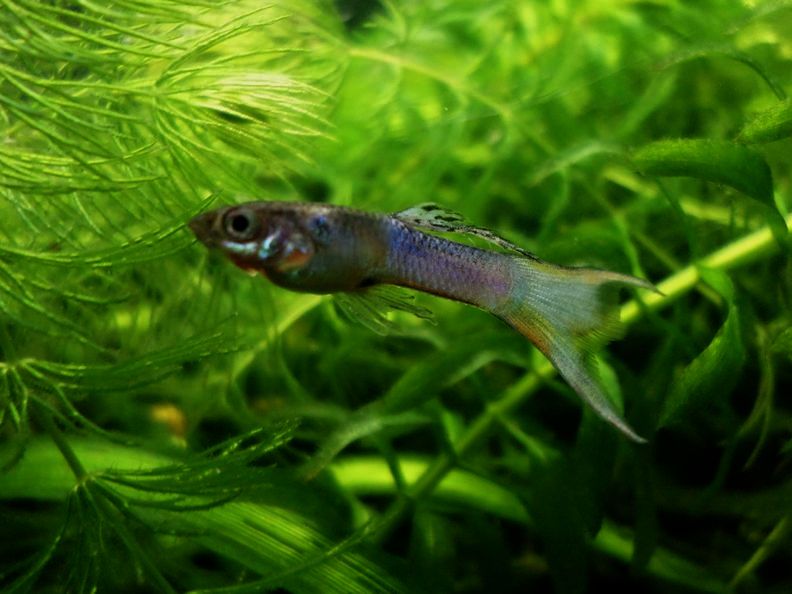 Еще способ сфотографировать спокойных гуппи: пораньше встать, включить свет в аквариуме и фотографировать не проснувшихся, правда цвета не очень яркие у сонных, вот что получилось