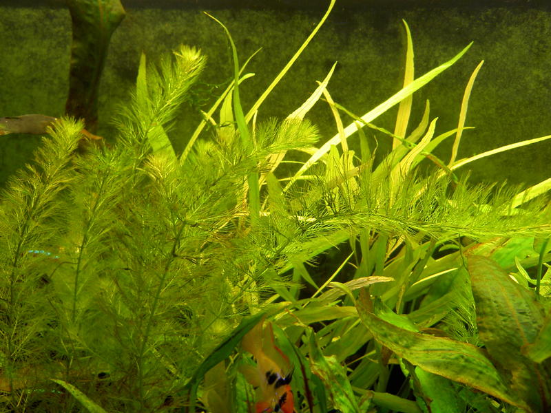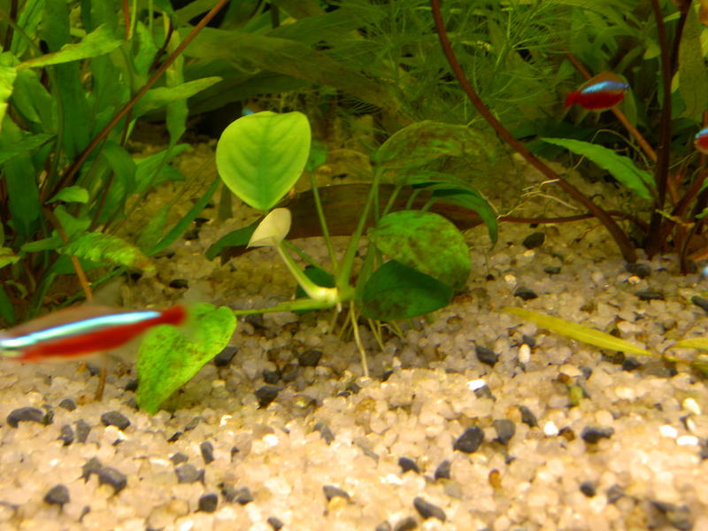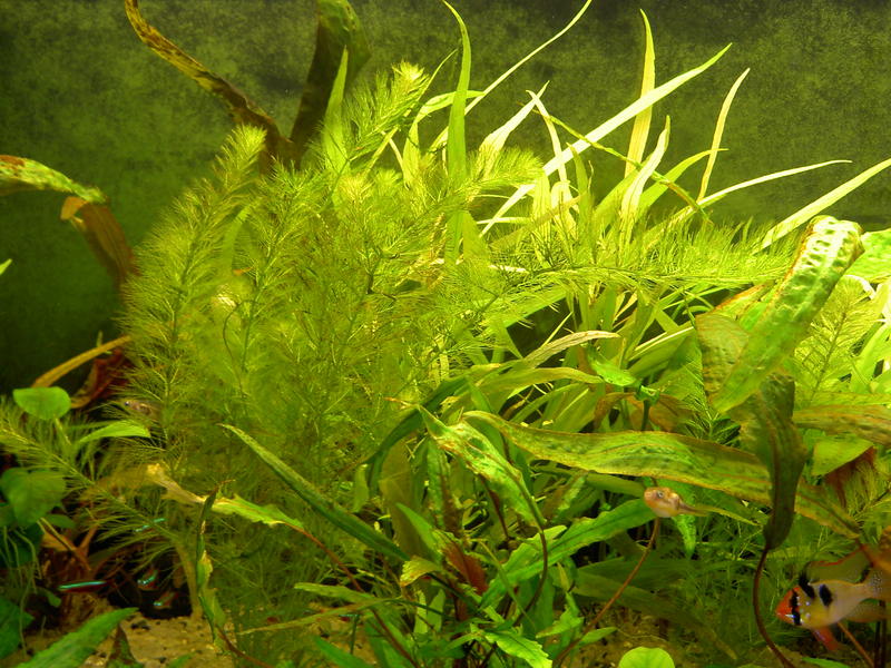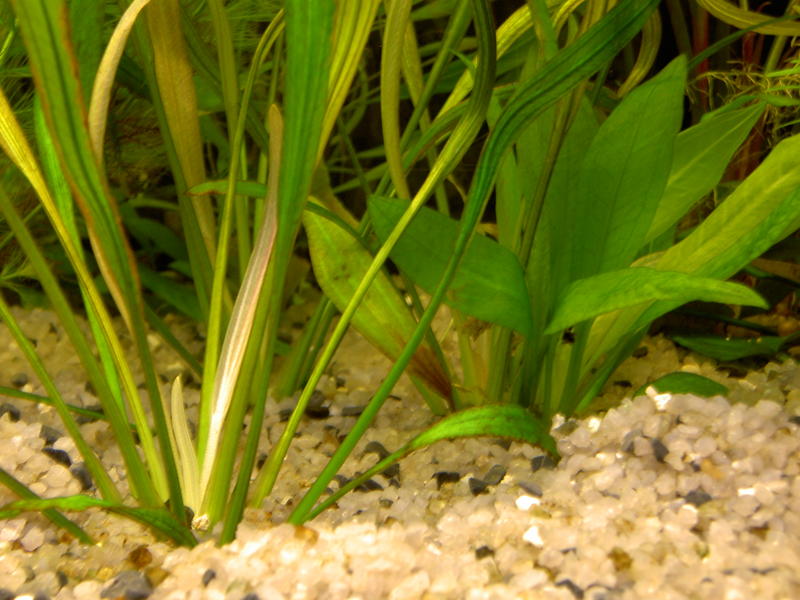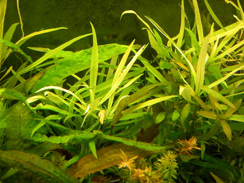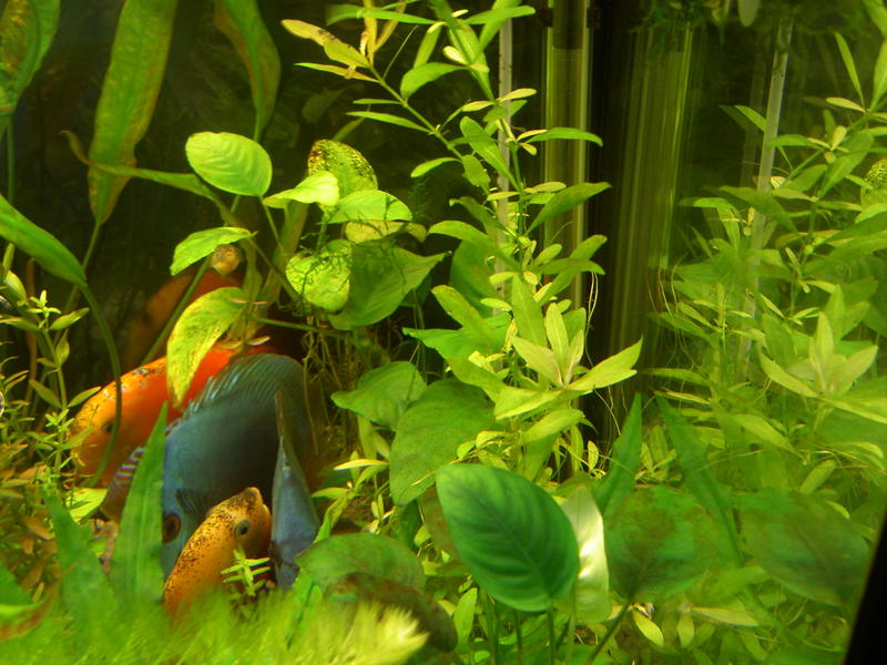 Botanic, Здравствуй уважаемый Botanic! Район Амурской площади. Аквариум д.ш.в 1500*500*600, воды 370 литров, гравий 6-7 см., t 28-29, фильтр внешник FLUVAL FX-5, 4 лампы по 36 W (3 шт OSRAM 830, 1 шт Philips aquarelle 890) 12 часов, 8 дискусов, 6 рамирез, 10 неонов, 8 карликовых тетрадонов, 2 стеклянных сома, с момента посадки твоих растений прошло приблизительно 3 недели, фосфаты - 2, нитраты 15-20, подмена воды через 2-3 дня по 10-15% из под крана, микро и сайдекс по твоим рекомендациям, растения не тянутся вверх, новые листья желто-кремового цвета, у длинностебельки края новых листьев дряблые и разваливаются, по всей высоте стеблей в местах роста листьев выростают новые боковые побеги (как бы кустится), хуже всего лимнофиле, при этом задняя стенка аквариума за это время заросла зеленым налетом, что возможно свидетельствует об избытке удобрений. На листьях криптокарин и анубиаса появились коричневые пятна или налет, как будто пригорели. Насколько я могу помнить, эти проблемы у меня начались после замены ламп с немецких на российские (характеристики те-же). С уважением, Роман!