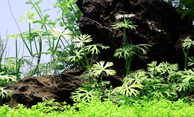 Гидрокотила трипартита (Hydrocotyle tripartita) Интересное быстрорастущее растение, нетребовательное. Идеально подходит для украшения углов или боковых стенок в небольшом аквариуме. Образует очень красивые, ступенчатые заросли.