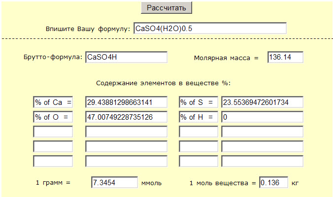 Вбиваем CaSO4(H2O)2 в желтый и в серый - результат = OK! (рис. Calc1_2.jpg, Calc2_2.jpg)