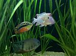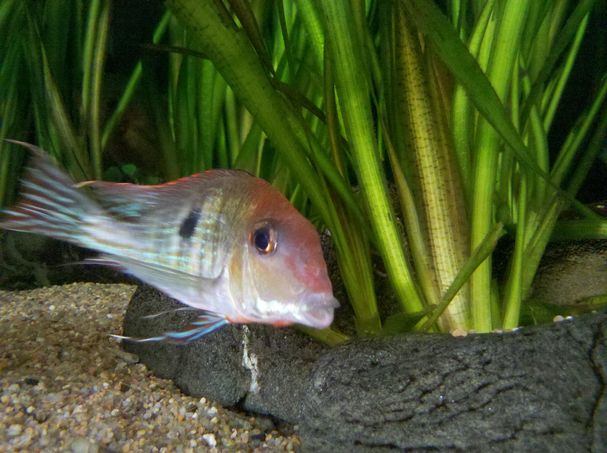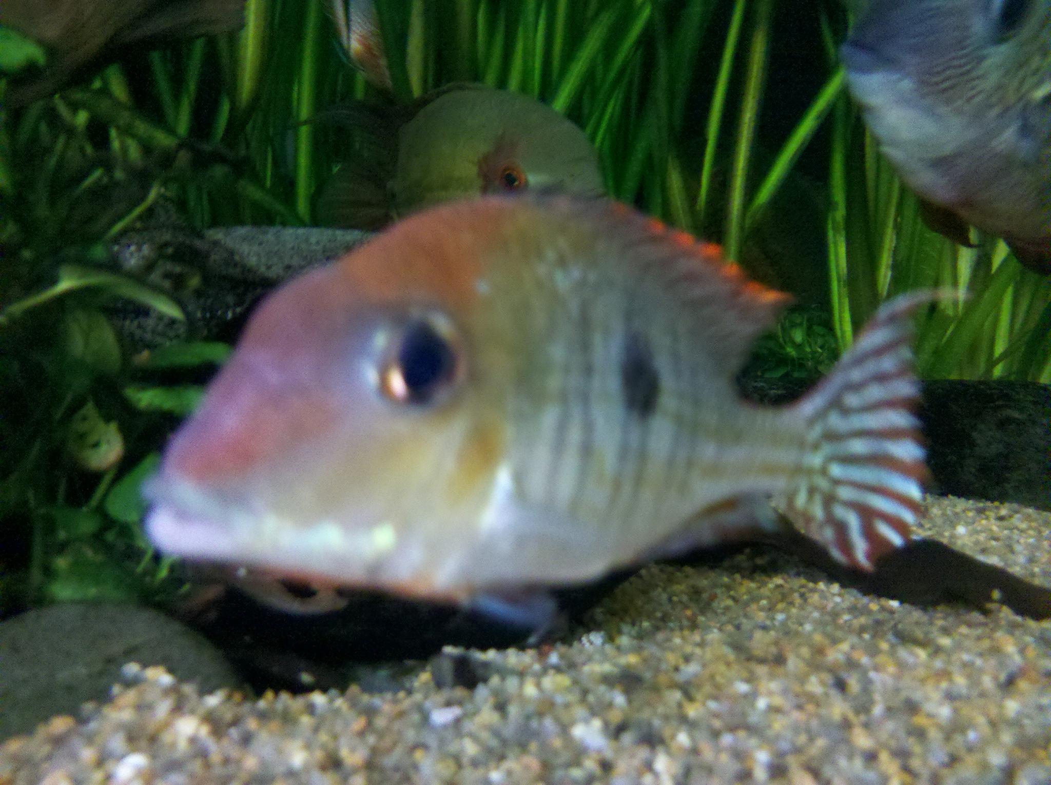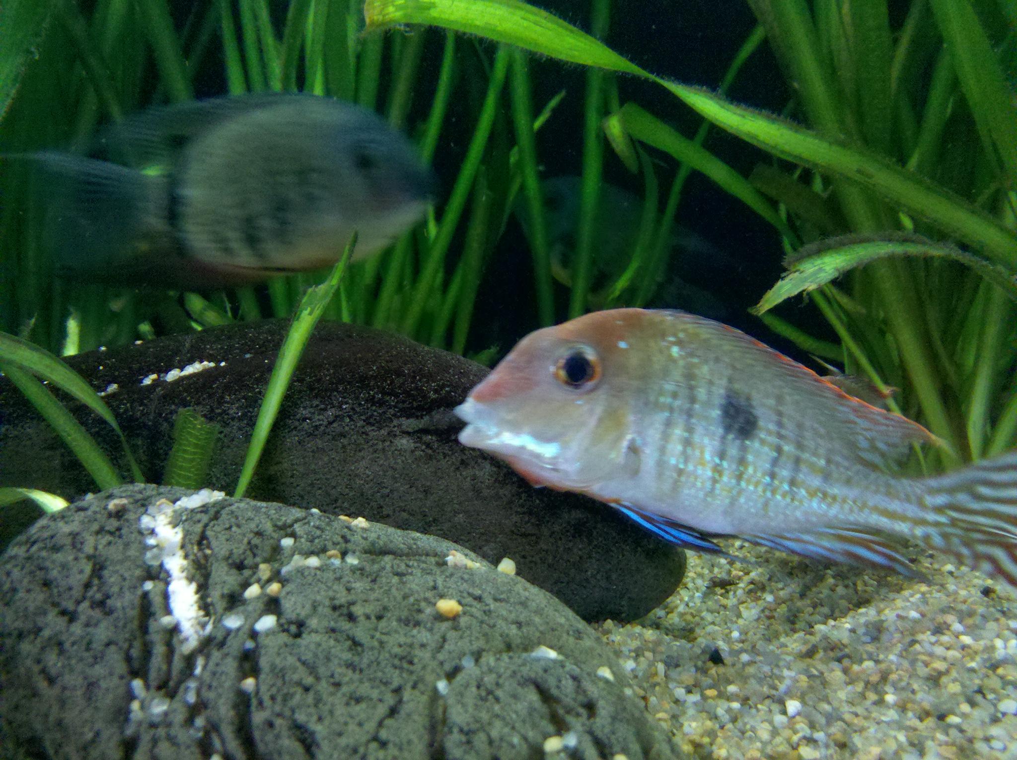 Для свидетелей влияния жёсткости на окрас геофагусов, хотел добавить, что красноголовые прожили в этом аквариуме все свои четыре, или уже пять, лет. Вода 18-19 градусов жесткости. Насколько это повлияло на их окрас - можно судить по фото. Фото не обработанные.