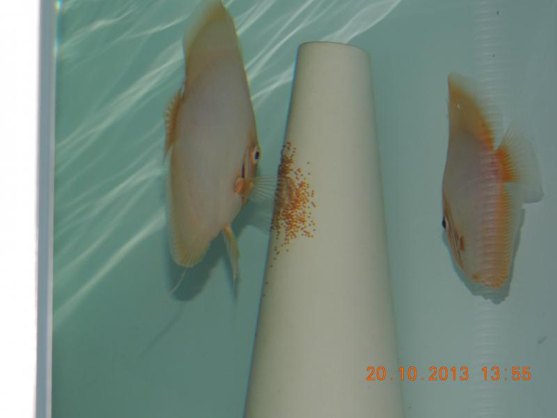 Вем привет)))четыре дня назад пиджены первый раз кинули икру в нерестовике(и на моей улице перевернулся камаз с пряниками)в общяке нерестятся семь пар,уже сбился со счета кто и сколько...))))мои попытки инкубировать икру оплодотверенную в общяге к успеху не привели(((выклюнолось четыре малька но поднять их не смог...долго мучался с водой в нерестовике-наконец чтото понял...и вот наконец то личинка есть!!!!!!УРА!!!но что самое удивительное-когда на конусе начал грибок расти родители ПЕРЕНЕСЛИ всех на мочалку))))у когото такое бывало?(фота не грузится,кто знает че делать?)Модератор, фоты не грузятся.в чем причина?